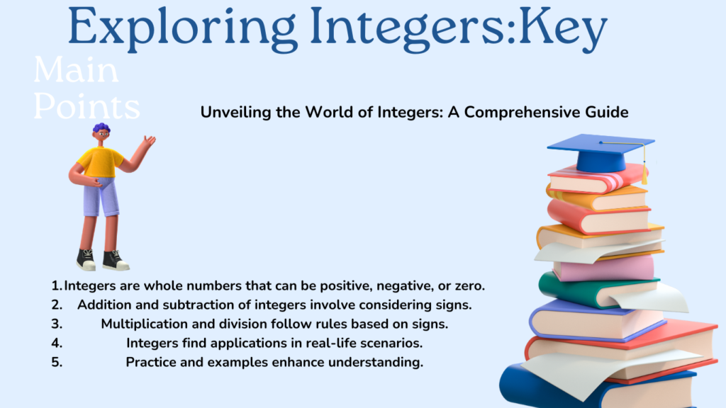 Q1: What are integers? A1: Integers are numbers that include whole numbers and their negative counterparts, as well as zero. They do not include fractions or decimals.